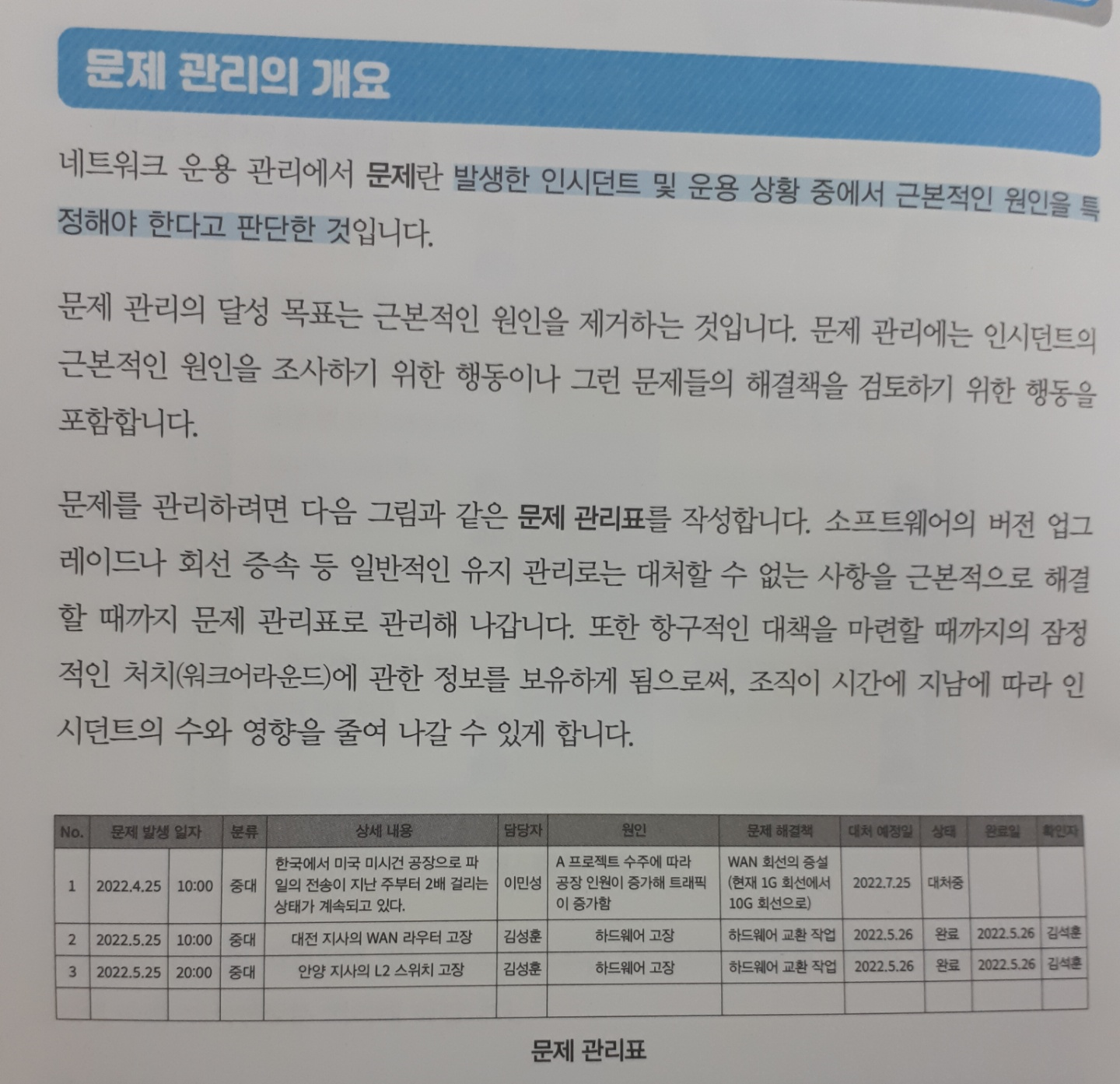 2. 네트워크 운용 및 유지보수를 예시 사례를 통해 배울 수 있다