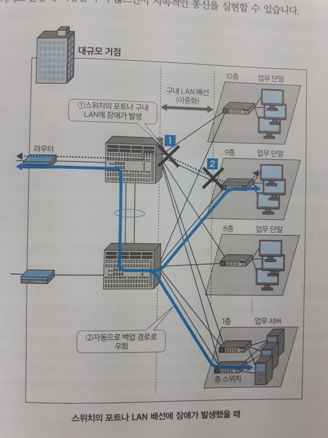 이번 카카오 화재로 인해 서비스가 중단되었을 때 '이중화가 미흡했다', '재난 대응/복구(DR, Disaster Recovery)가 미흡했다'는 이야기가 많았다. 이중화는 어떻게 하면 좋은 걸까? 《네트워크 운용 및 유지 보수의 모든 것》에서는 장애 상황별 네트워크 이중화 방식 사례를 여러가지 알려주고 있다.