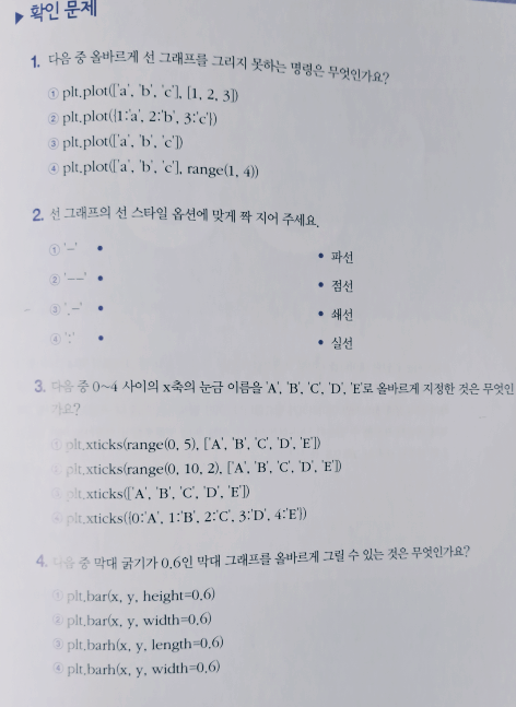 위 그림은 책의 내용을 하나씩 실습을 마치면 배우게 되는 맷플롯립(matplotlib)을 이용한 시각화 자료다. 데이터 분석이 어렵게만 느껴졌었는데 책의 내용을 천천히 따라가다보니 '겁내기보다는 하나씩 하나씩 하면 된다'는 자신감이 생겼다.