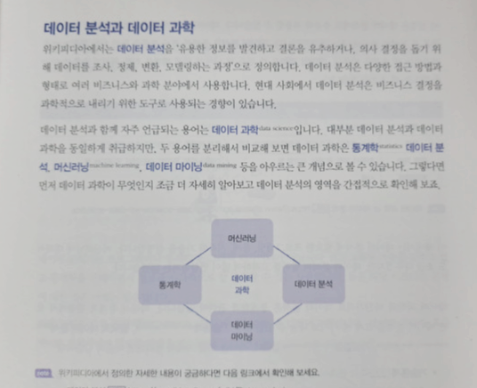 책에서 알려주는 내용을 정리해보면 '목표 설정 - 데이터 수집 - 데이터 가공 - 데이터 출력(시각화) - 미래 예측'이라는 흐름이 반복된다.