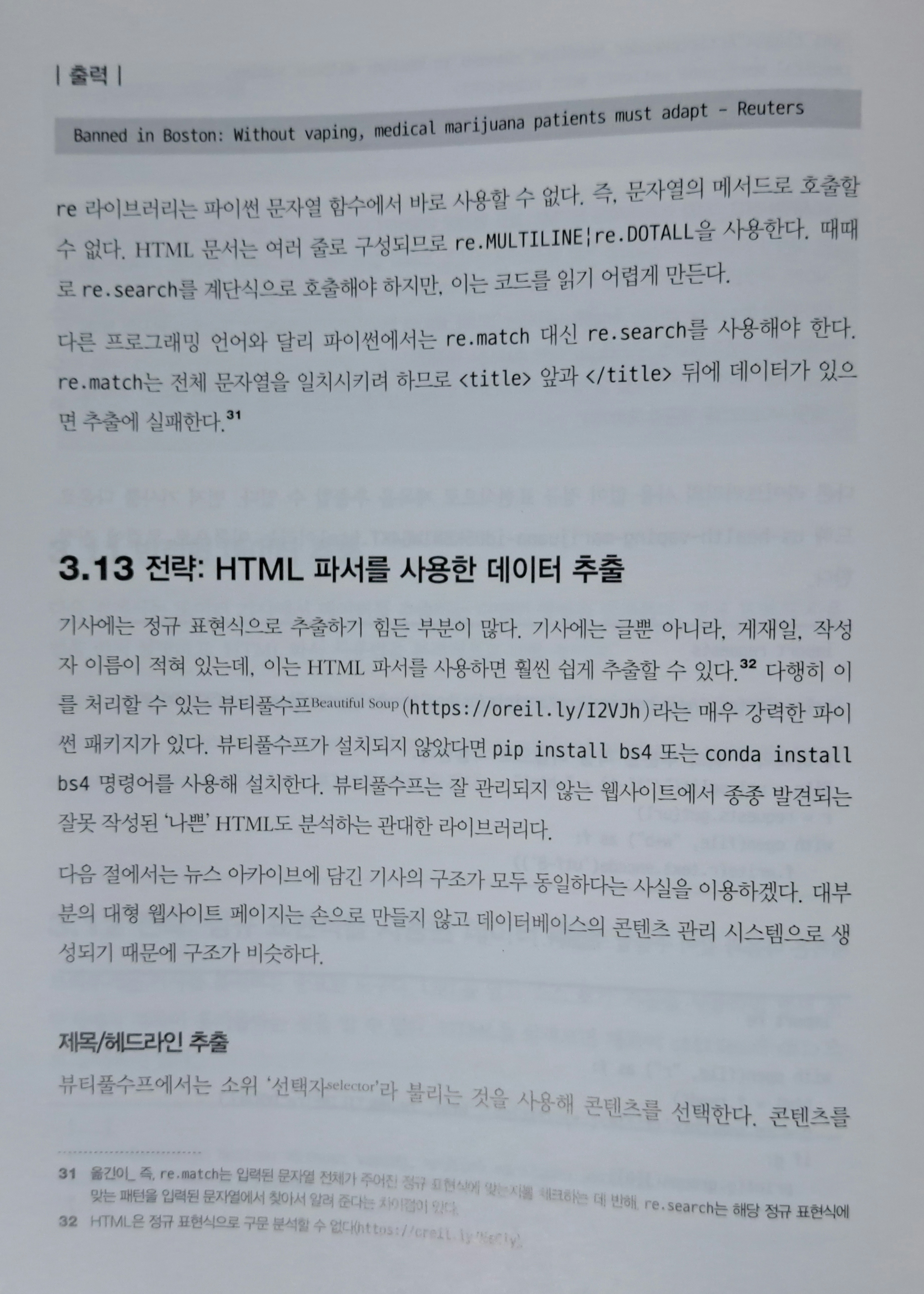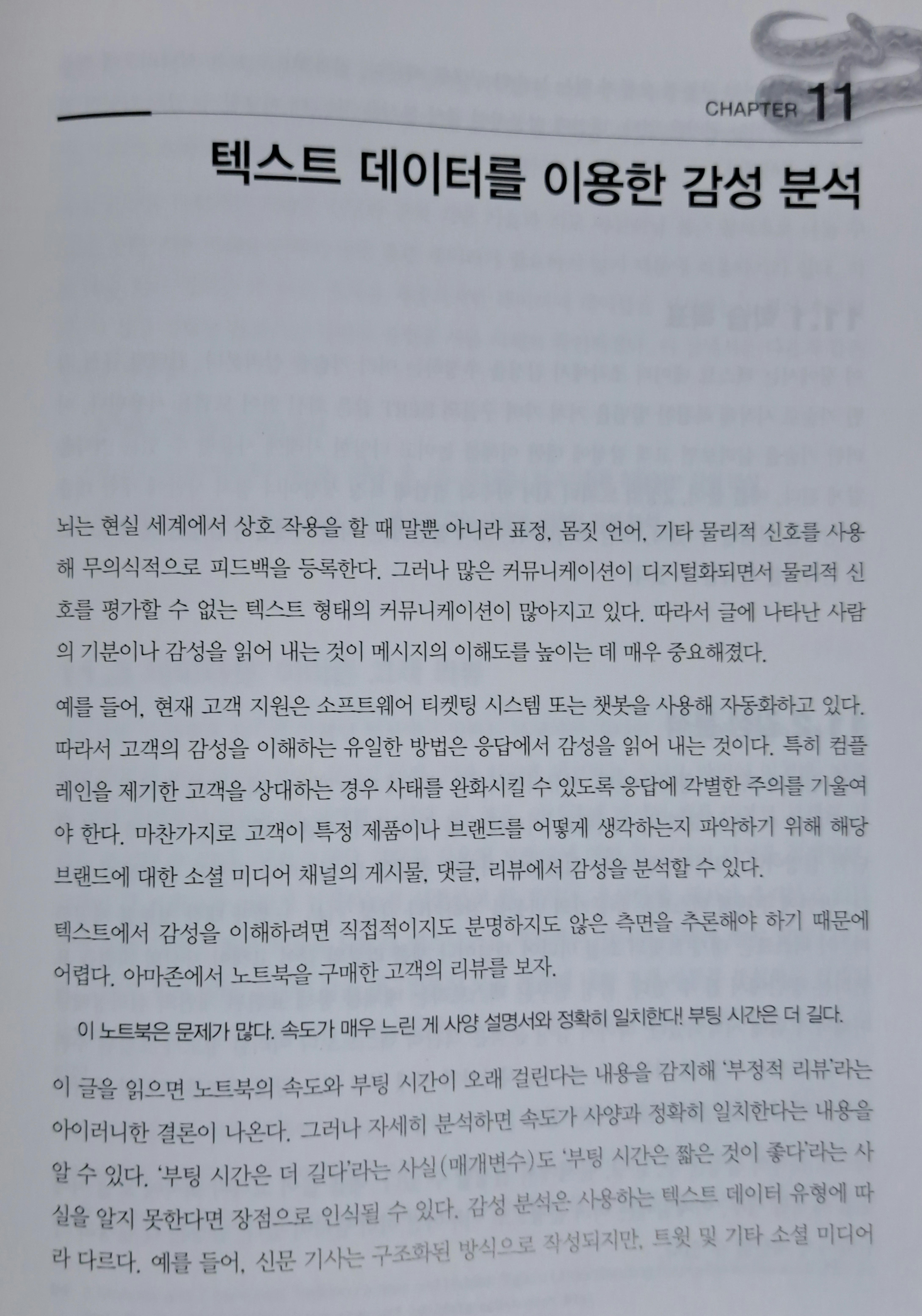 그래서인지 이 책에선 '비지도 학습' 같은 머신러닝 영역도 다루고 있다. 물론 데이터 수집(크롤링), 정제와 같은 일반적인 내용도 담고 있다.