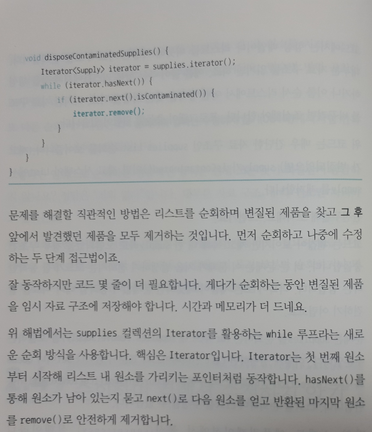 '자바 코딩의 기술'에서는 '샘플 코드 제시-> 문제점 분석 -> 해결(코딩 가이드 정리)'의 순서로 구성되어있다.