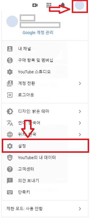 2-5. 유튜브 페이지 오른쪽 상단에 프로필 이미지를 선택한다.