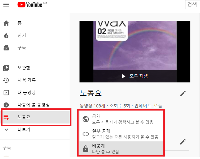 유튜브도 이 목록 공개 여부 설정 기본값이 '공개'로 되어있다.