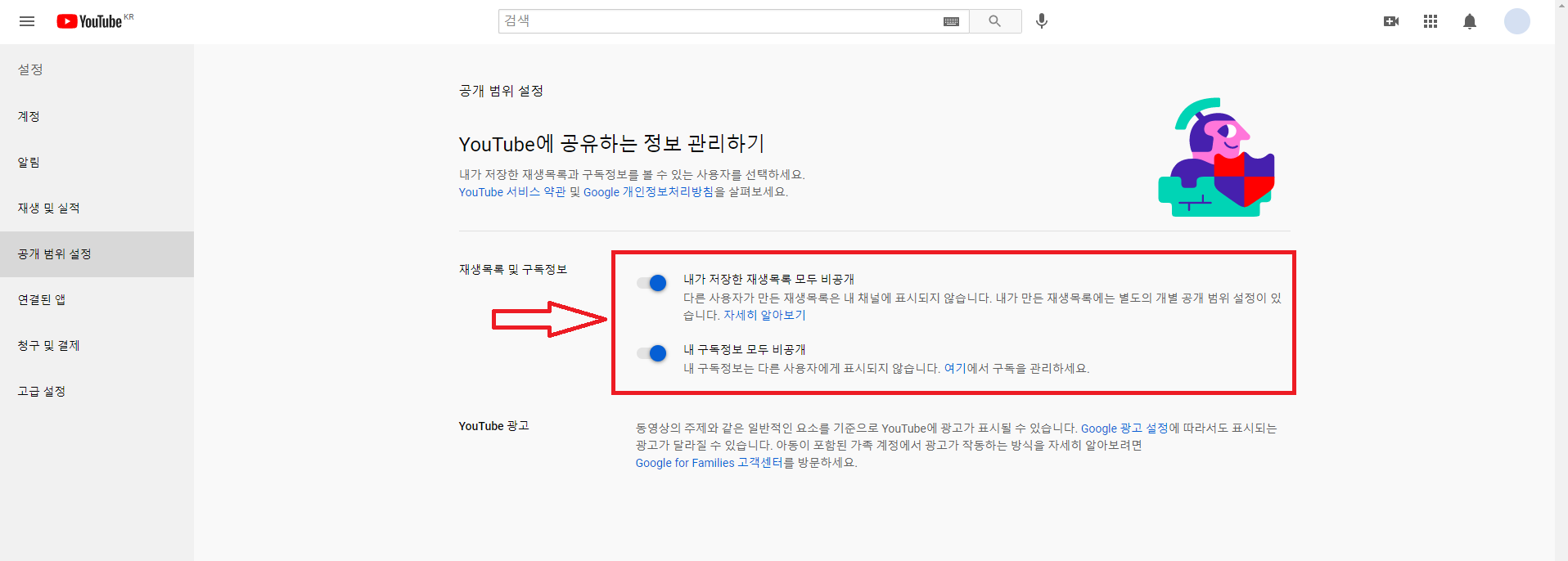 2. 유튜브의 재생목록 / 구독 채널 비공개 설정하기