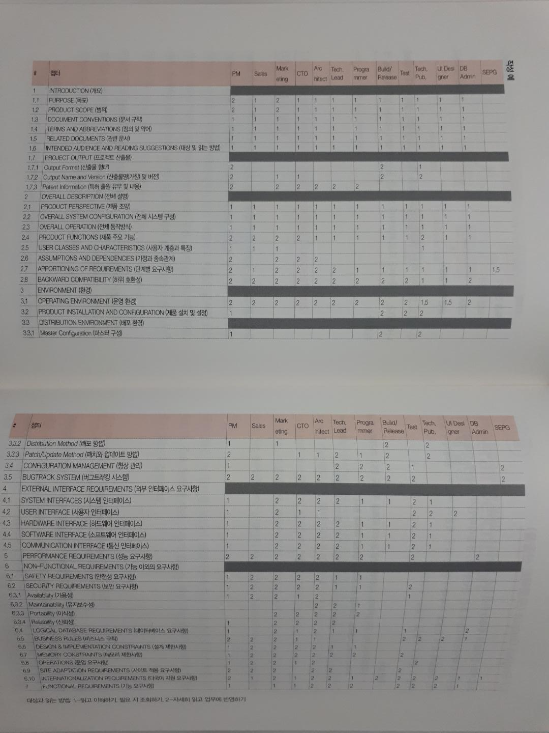SRS 작성법을 설명하는 부분에서는 수많은 SRS 문서의 종류와 템플릿 예시를 설명해주고 있다. 스펙을 문서로 정리하는 것은 프로젝트의 규모, 당사자의 상황에 따라 형식이 다를 수밖에 없다. 나는 구글 문서를 이용해서 내가 보기 편한 대로 작성하곤 했다. 책에 포함된 템플릿 예시를 보면서 나의 부족한 부분들을 알게 되어서 큰 도움이 되었다.