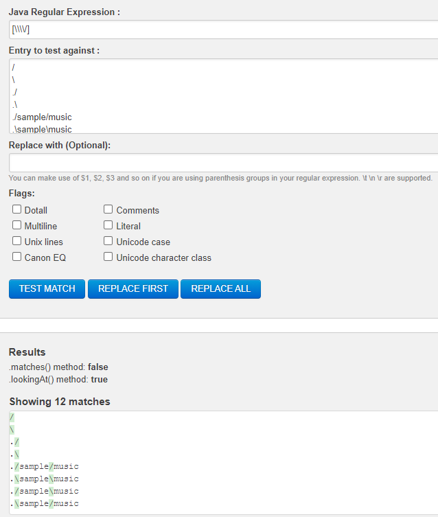 String replace6 = ".\\test/log".replaceAll(regex, replacedText);